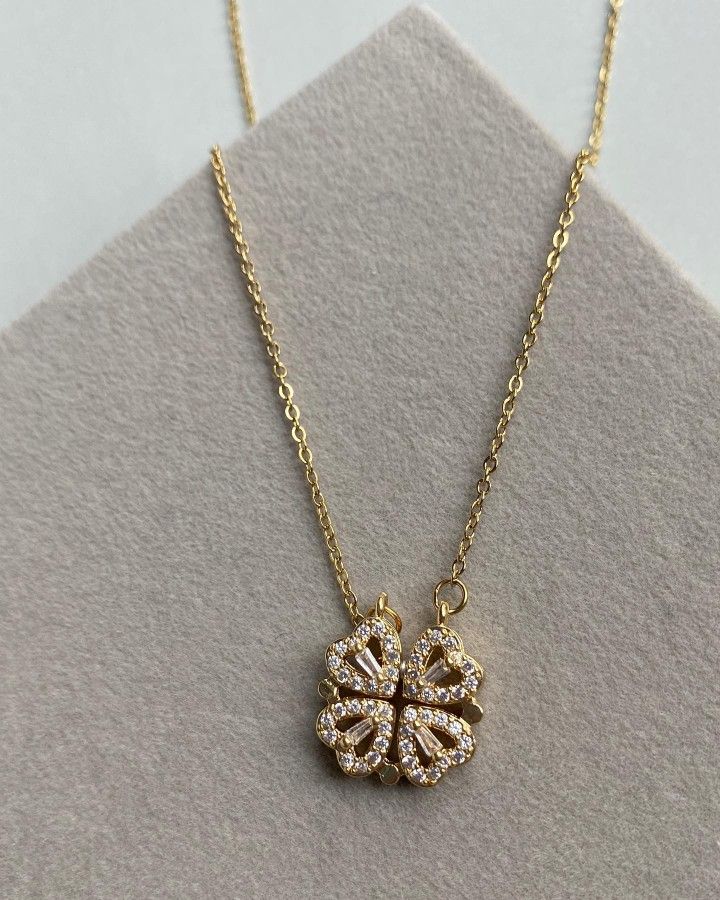 **2-in-1 Magnetic Four-Leaf Clover Necklace – Double the Luck, Twice the Style**