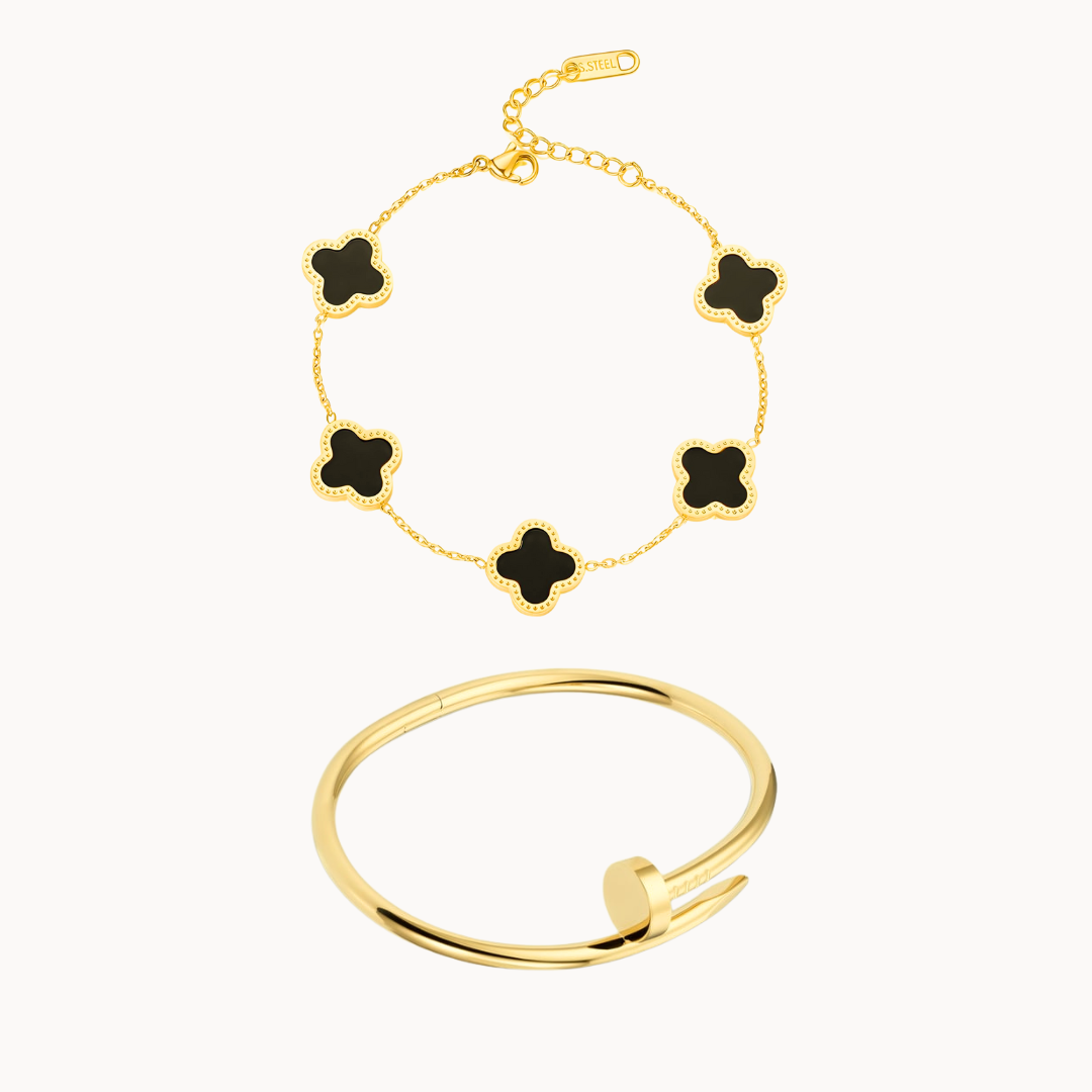 Cartier Nail bangle with Black clover bracelet